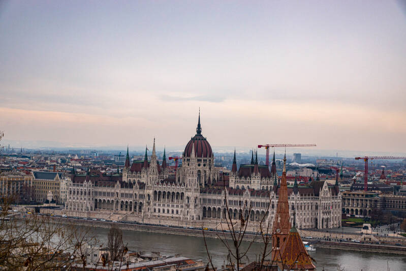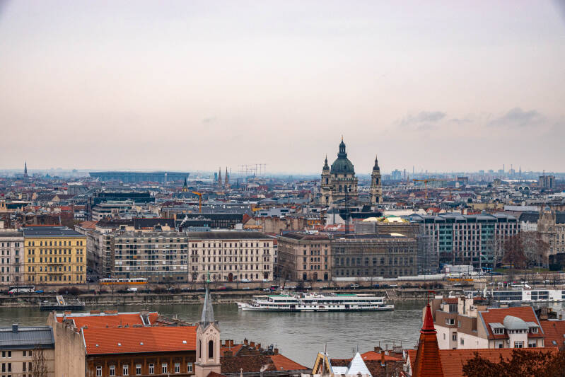 Hieronder en rechts: de overkant van de Donau, het stadsdeel Pest.