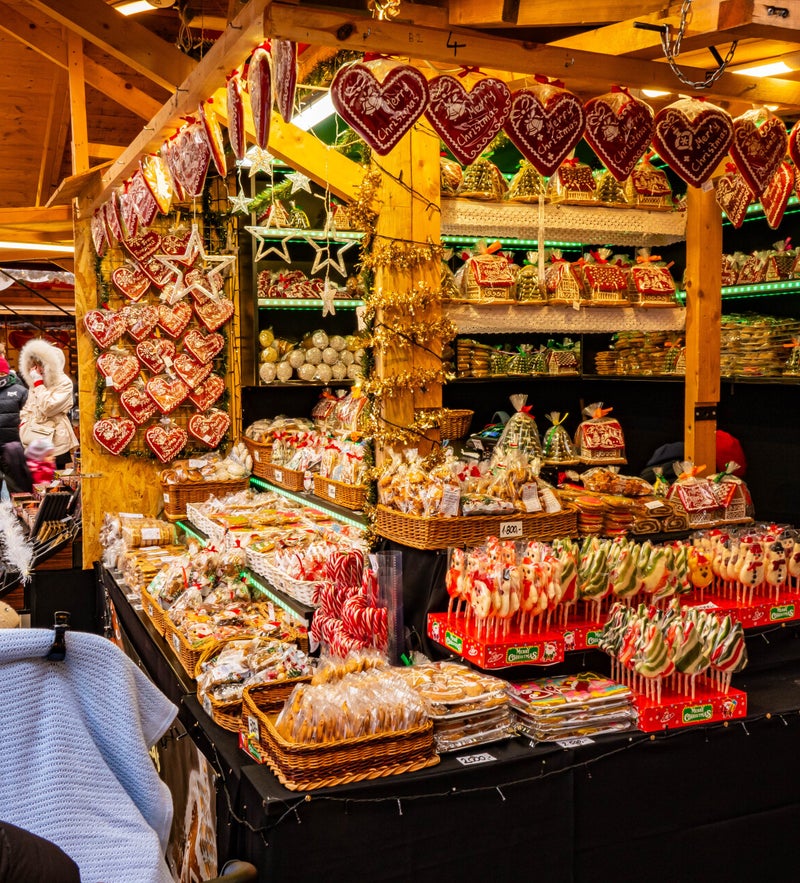 De kerstmarkt op het plein tegenover de basiliek