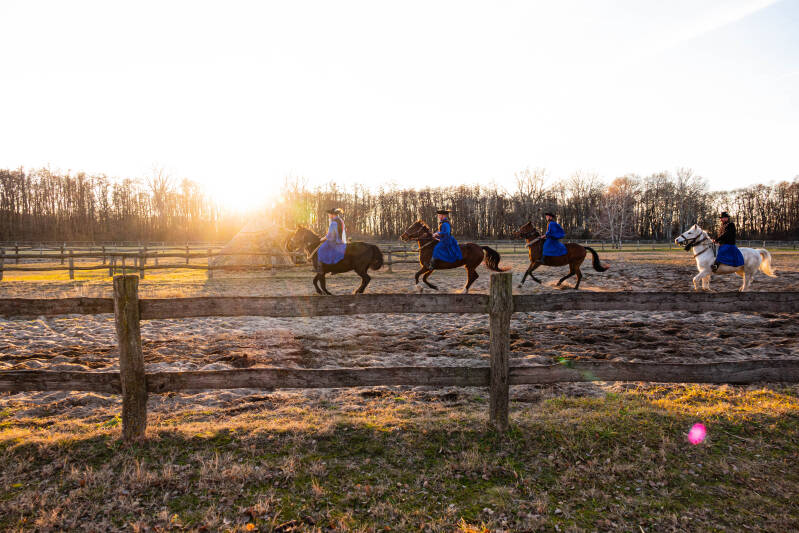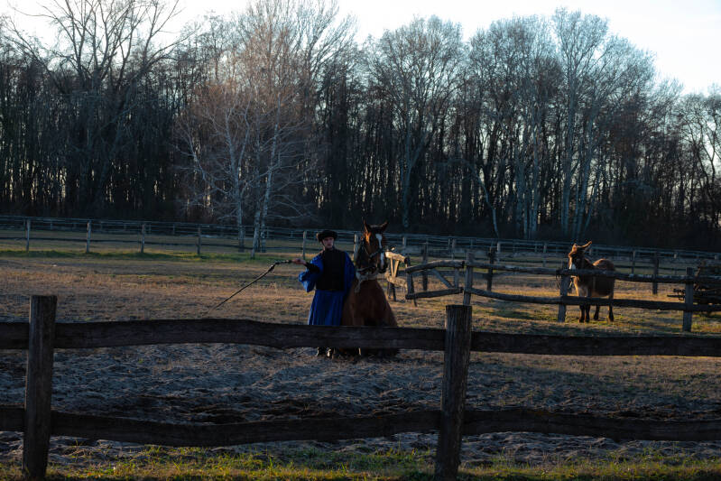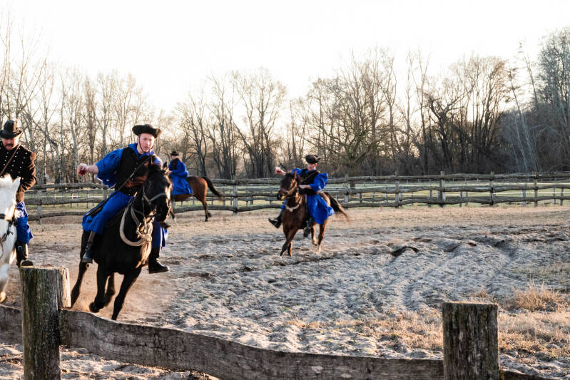 De poesta cowboys waren allemaal gekleed in traditionele kostuums.