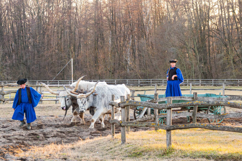 Hierboven (rechts) het woonhuis van de Hongaarse componist Bela Bartok. Hierna reden we met de bus naar het platteland, de poesta. We werden verwelkomt met een hapje en drankje en muzikaal door een violist. Hierna maakten we een kort ritje met twee grote paardenwagens waarna we een show kregen voorgeschoteld met diverse paarden, een ossenwagen en een ezelkar. Erg vermakelijk. Na afloop stond er een maaltijd voor ons klaar (veel vlees)