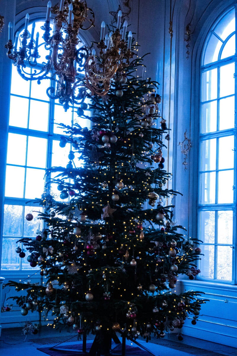 Boven: werkkamers van Franz Jozef en Sissi, beneden de kasteeltuinen. Nu nog aangekleed voor Kerst.